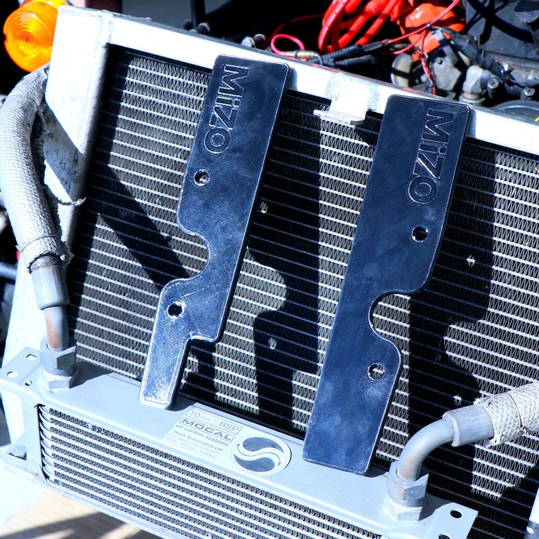 ラジエーターとフレームの間に挟んでラジエーターを8mm前方へオフセットするためのスペーサーです。冷却ファンを後方に配置してプル式とする際にフレームとの干渉を避けるため製作しました。ラジエーターとフレームの隙間を埋めて、冷却効率を向上させます。
